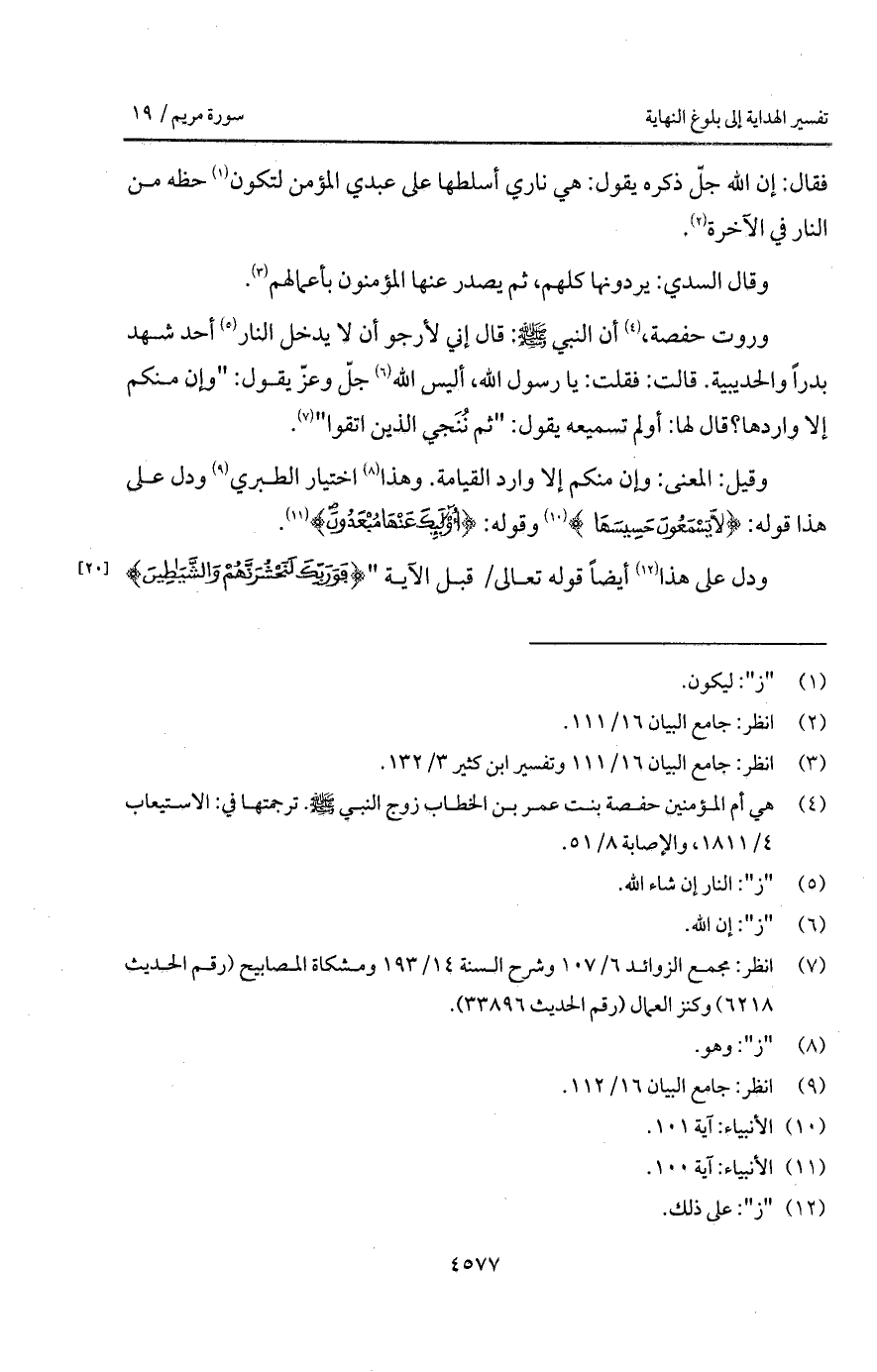 وروت حفصة، " أن النبي A: قال إني لأرجو أن لا يدخل أحد شهد بدراً والحديبية. قالت: فقلت: يا رسول الله، أليس الله جلّ وعزّ يقول: " وإن منكم إلا واردها؟ قال لها: أولم تسمعيه يقول: " ثم نُنَجي الذين اتقوا ".