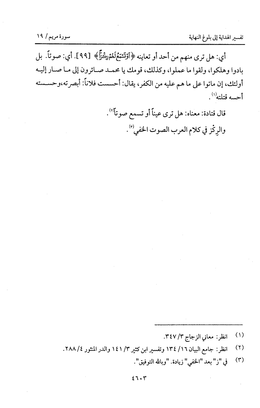 قال قتادة: معناه: هل ترى عيناً أو تسمع صوتاً.