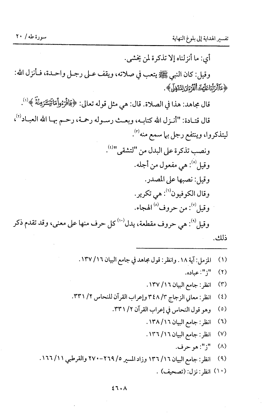 وقيل: كان النبي A يتعب في صلاته، ويقف على رجل واحدة، فأنزل الله: {مَآ أَنَزَلْنَا عَلَيْكَ القرآن لتشقى}.