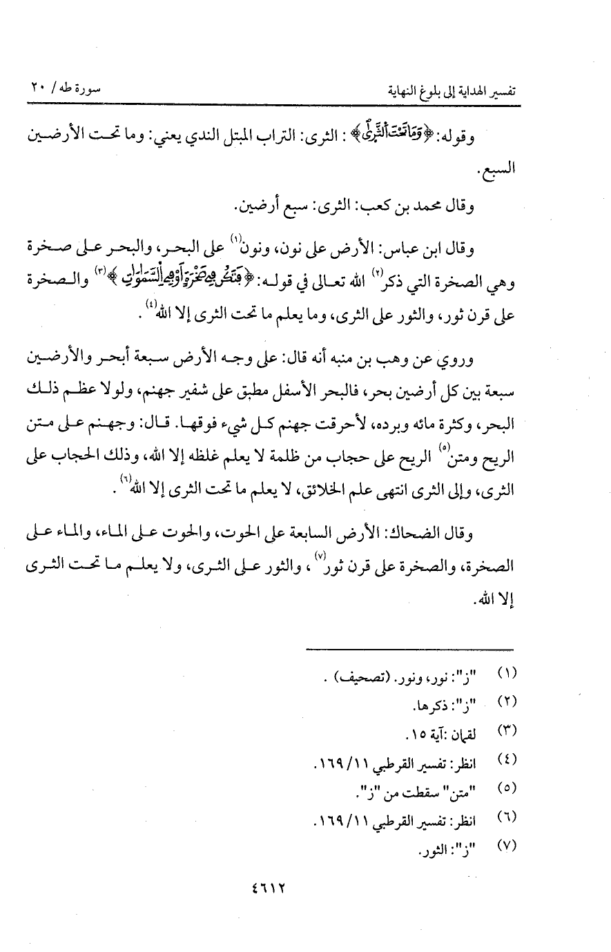 وقال محمد بن كعب: الثرى: سبع أرضين.