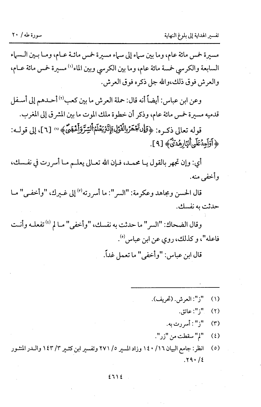 مسيرة خمس مائة عام، وما بين سماء إلى سماء مسيرة خمس مائة عام، وما بين السماء السابعة والكرسي خمسة مائة عام، وما بين الكرسي وبين الماء مسيرة خمس مائة عام، والعرش فوق ذلك، والله جل ذكره فوق العرِِش.