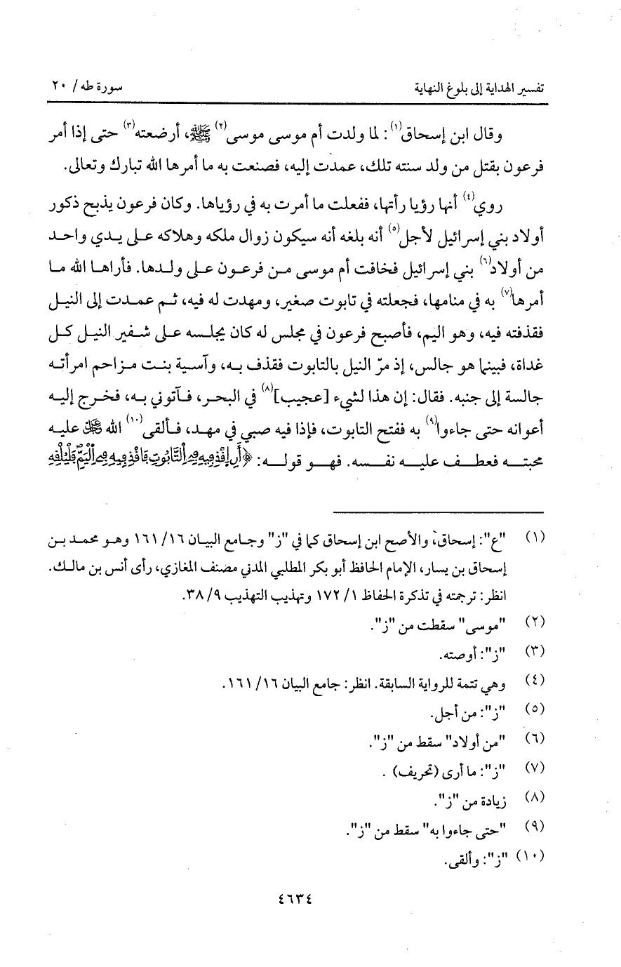 وقال ابن إسحاق: لما ولدت أم موسى موسى A، أرضعته حتى إذا أمر فرعون بقتل من ولد سنته تلك، عمدت إليه، فصنعت به ما أمره الله تبارك وتعالى.