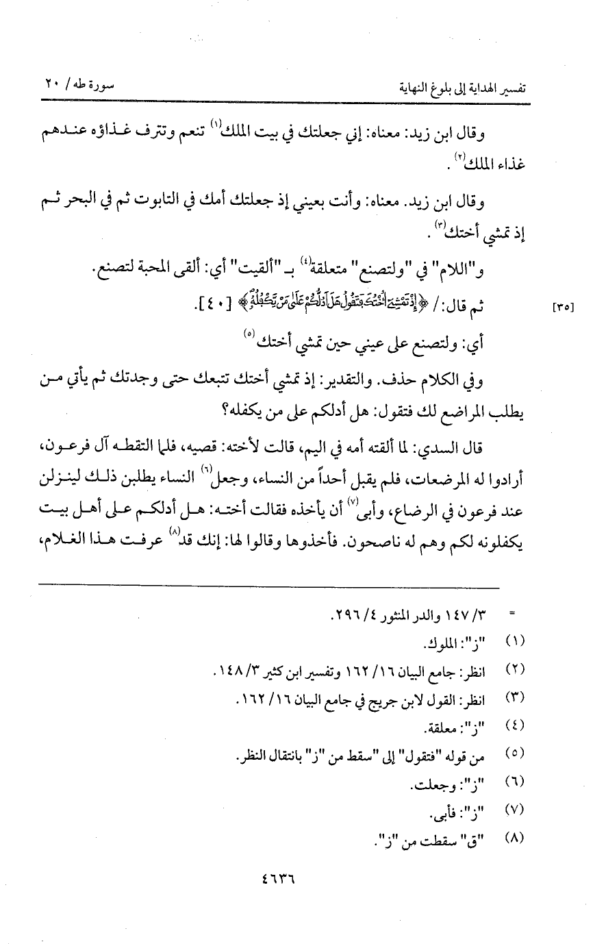 ثم قال: / {إِذْ تمشي أُخْتُكَ فَتَقُولُ هَلْ أَدُلُّكُمْ على مَن يَكْفُلُهُ}.