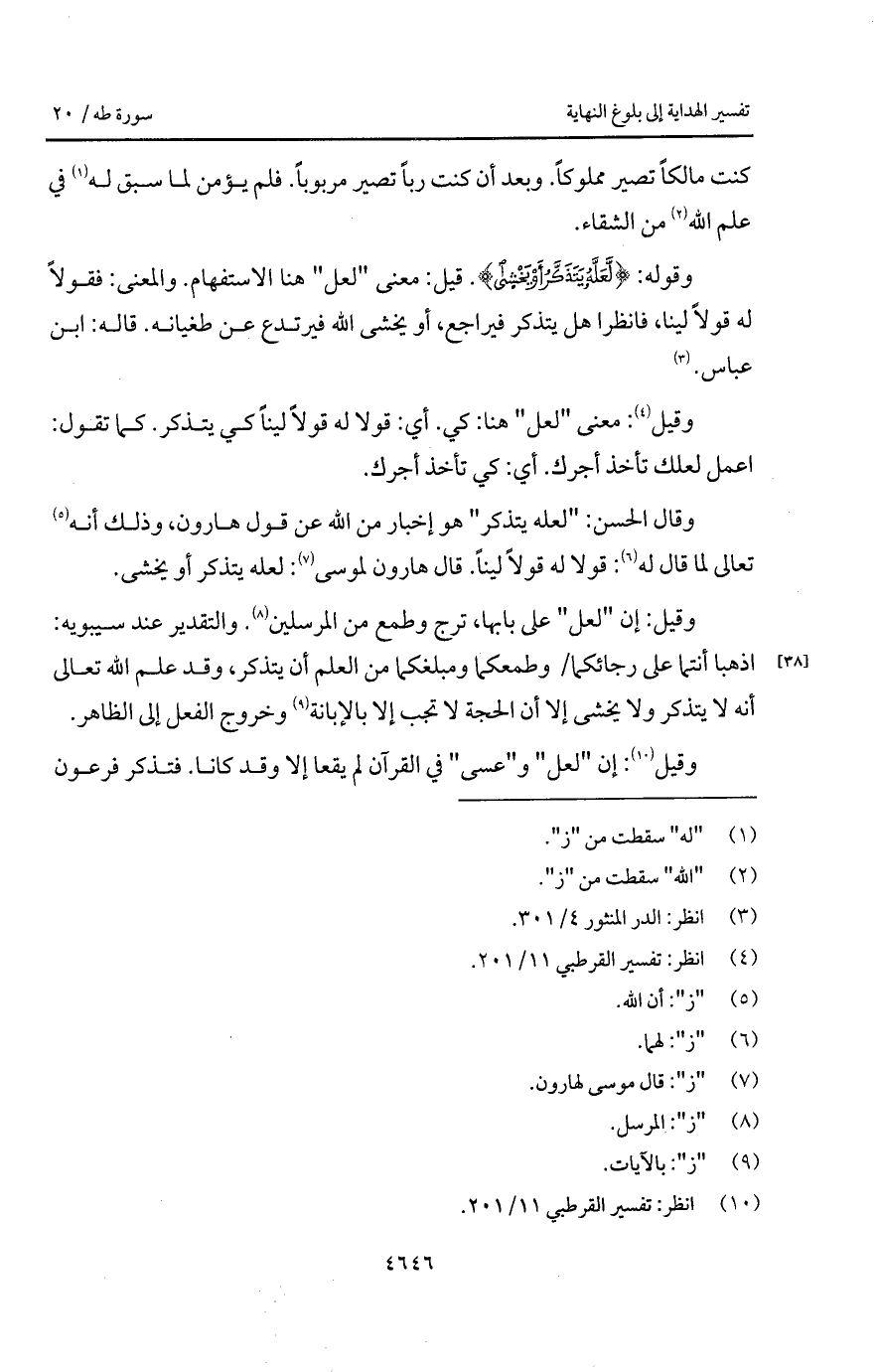 وقال الحسن: " لعله يتذكر " هو إخبار من الله عن قول هارون، وذلك أنه تعالى لما قال له: قولا له قولاً ليناً. قال هارون لموسى: لعله يتذكر أو يخشى.