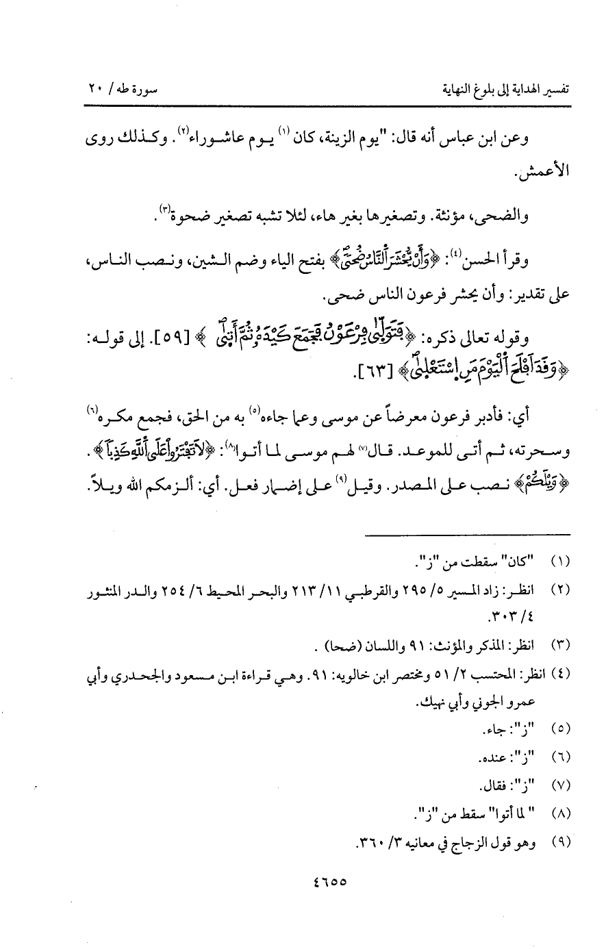 وعن ابن عباس أنه قال: " يوم الزينة، كان يوم عاشوراء. كذلك روى الأعمش.
