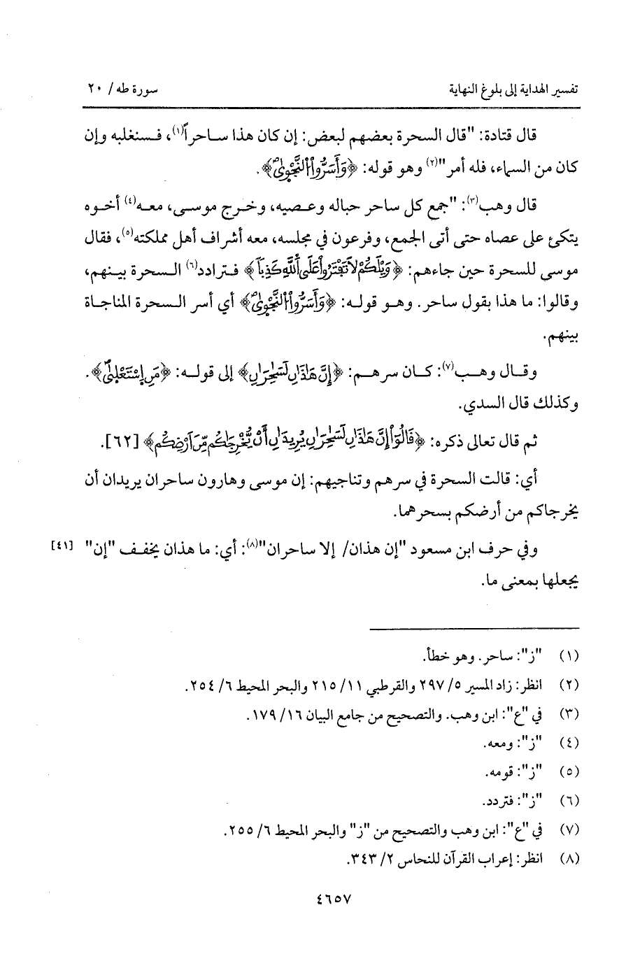 قال وهب: " جمع كل ساحر حباله وعصيه، وخرج موسى، معه أخوه يتكئ على عصاه حتى أتى الجمع، وفرعون في مجلسه، معه أشراف أهل مملكته، فقال موسى للسحرة حين جاءهم: {وَيْلَكُمْ لاَ تَفْتَرُواْ عَلَى الله كَذِباً} فترادد السحرة بينهم، وقالوا: ما هذا بقول ساحر. وهو قوله: {وَأَسَرُّواْ النجوى} أي أسر السحرة والمناجاة بينهم.