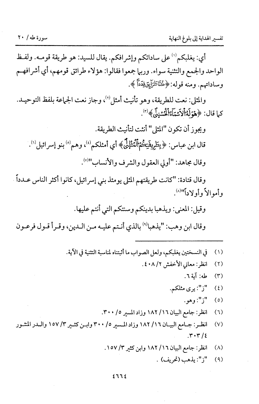 وقل ابن وهب: " يذهبا بالذي أنتم عليه من الدين، وقرأ قول فرعون