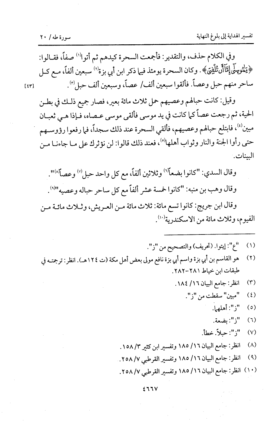 وقال وهب بن منبه: " كانوا خمسة عشراً ألفاً مع كل ساحر حباله وعصيه ".