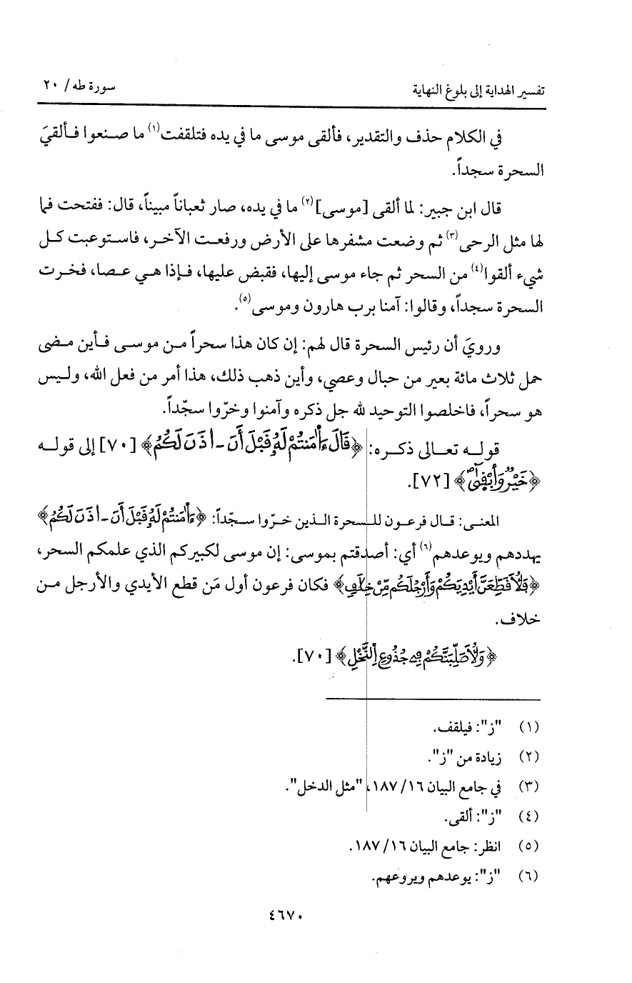 ورويَ أن رئيس السحرة قال لهم: إن كان هذا سحراً من موسى فأين مضى حمل ثلاث مائة بعير من حبال وعصي، وأين ذهب ذلك، هذا أمر من فعل الله، وليس هو سحراً، فاخلصوا التوحيد لله جل ذكره وآمنوا وخرّوا سجّداً.
