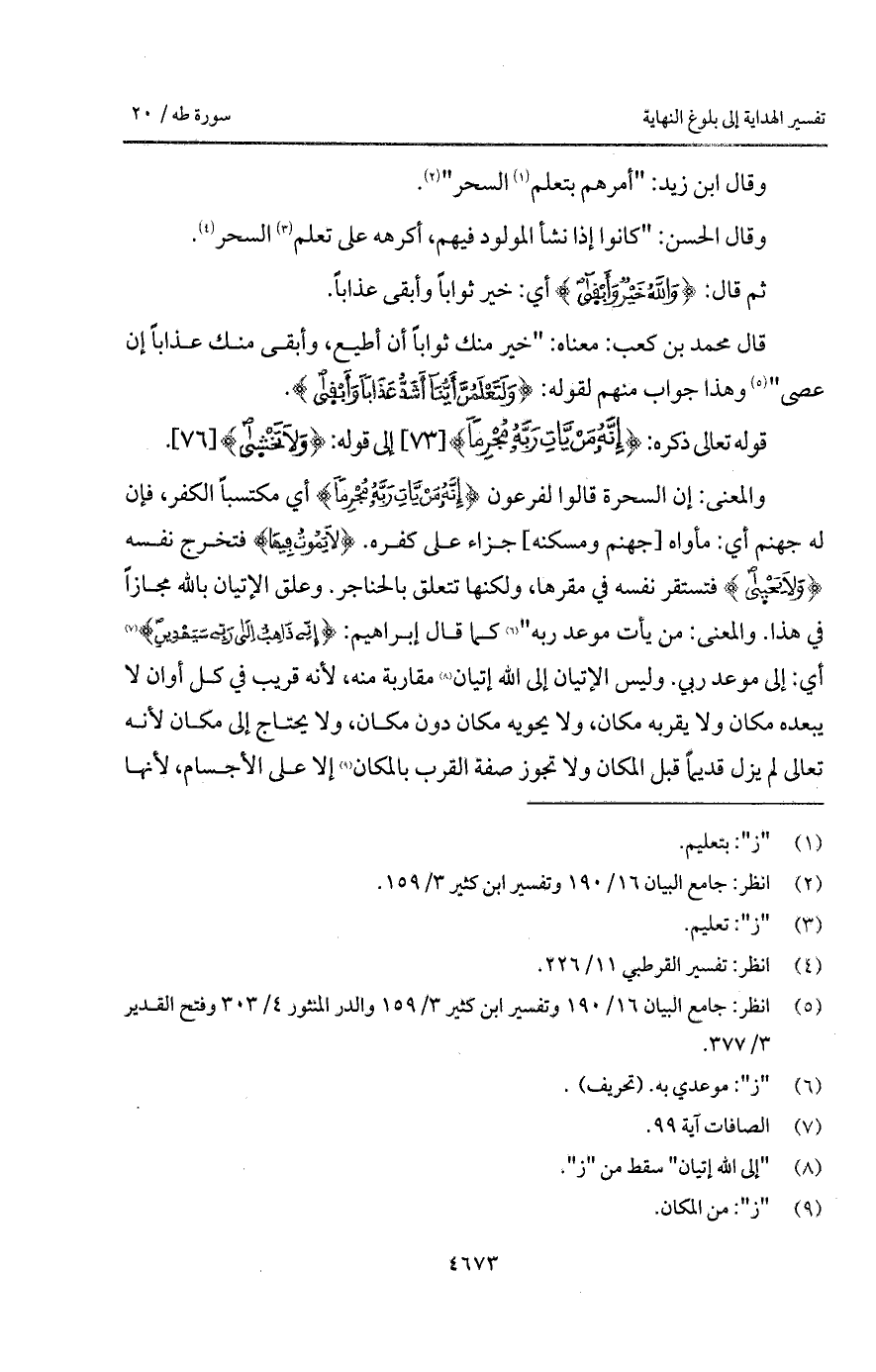 والمعنى: إن السحرة قالوا لفرعون {إِنَّهُ مَن يَأْتِ رَبَّهُ مُجْرِماً} أي مكتسباً الكفر، فإن له جهنم أي: مأواه [جهنم ومسكنه] جزاء على كفره. {لاَ يَمُوتُ فِيهَا} فتخرج نفسه {وَلاَ يحيى} فتستقر نفسه في مقرها، ولكنها تتعلق بالحناجر. وعلق الإتيان بالله مجازاً في هذا. والمعنى: من يأت موعد ربه " كما قال إبراهيم: {إِنِّي ذَاهِبٌ إلى رَبِّي سَيَهْدِينِ} [الصافات: 99] أي: إلى موعد ربي. وليس الإتيان إلى الله إتيان مقاربة منه، لأنه قريب في كل أوان لا يبعده مكان ولا يقربه مكان، ولا يحويه مكان دون مكان، ولا يحتاج إلى مكان لأنه تعالى لم يزل قديماً قبل المكان ولا تجوز صفة القرب بالمكان إلا على الأجسام، لأنها