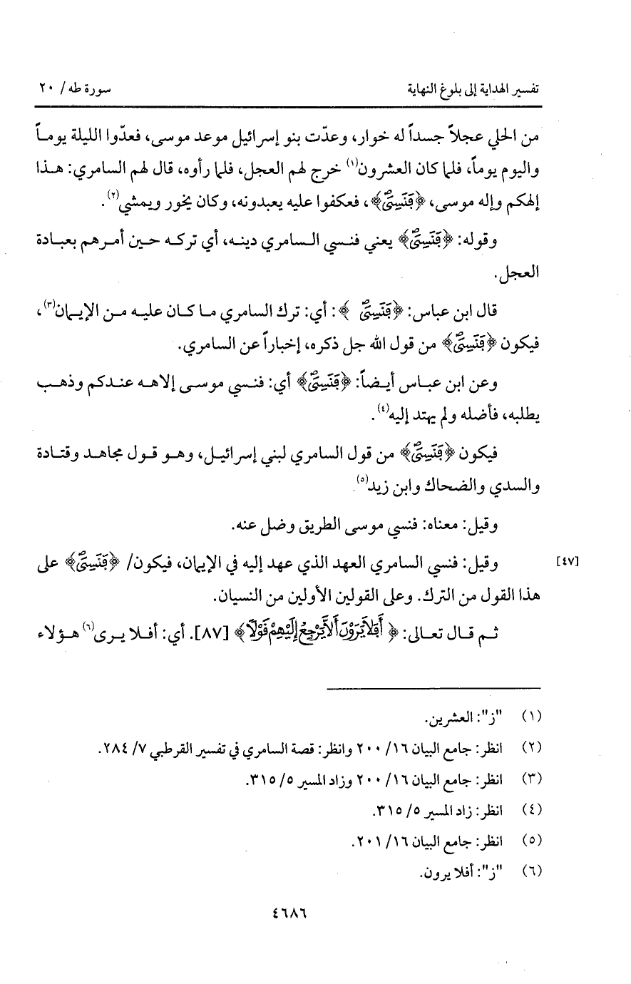 قال ابن عباس: {فَنَسِيَ}: أي: ترك السامري ما كان عليه من الإيمان، فيكون {فَنَسِيَ} من قول الله جل ذكره، إخباراً عن السامري.