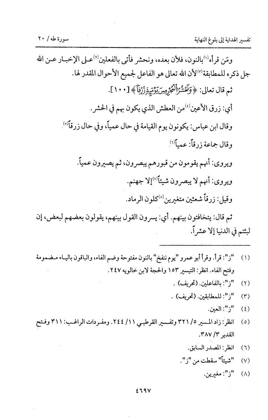 ثم قال تعالى: {وَنَحْشُرُ المجرمين يَوْمِئِذٍ زُرْقاً}.