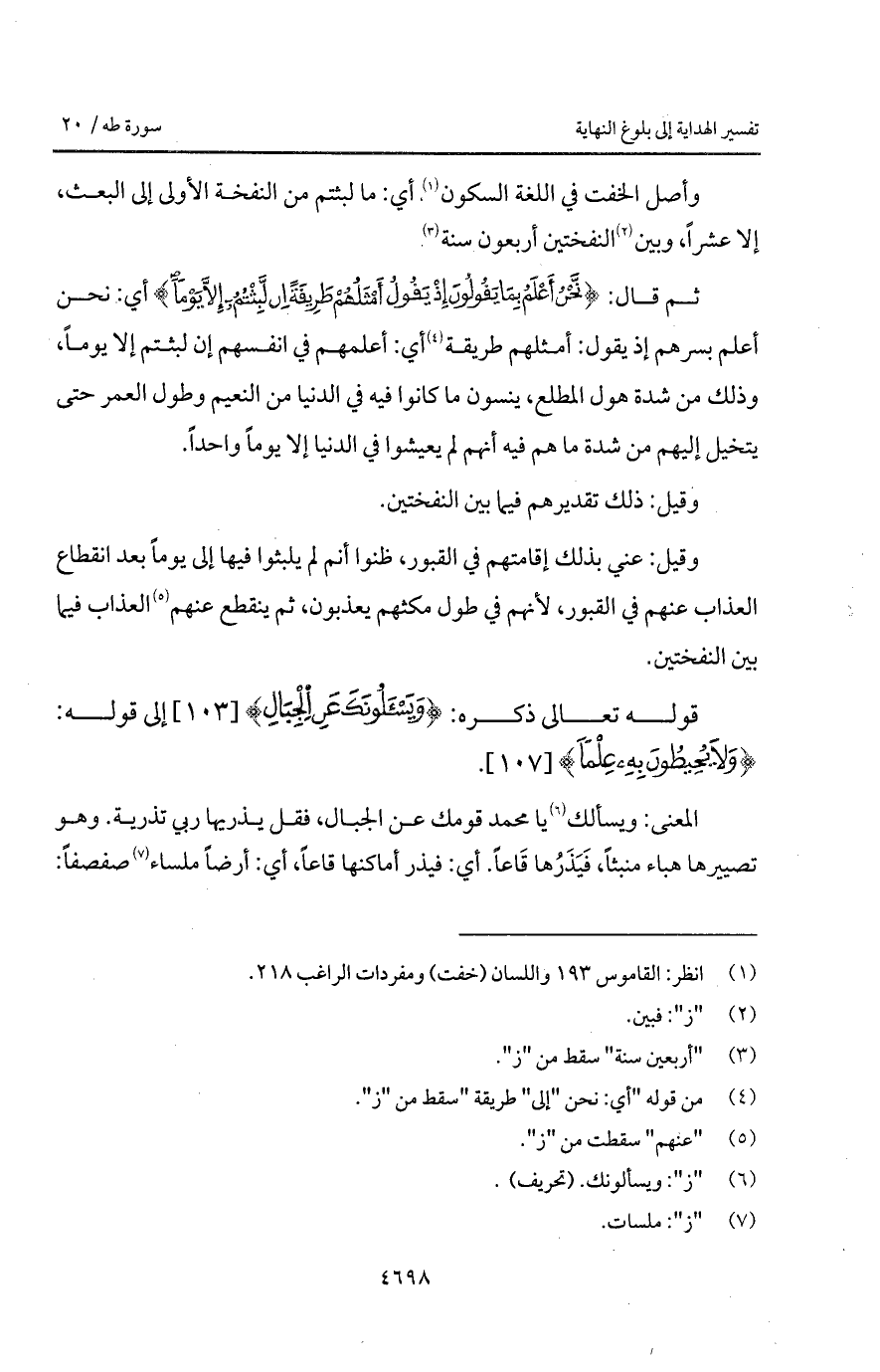 المعنى: ويسألك يا محمد قومكم عن الجبال، فقل يذريها ربي تذرية. وهو تصييرها هباء منبثاً، فَيَذَرُها قَاعاً. أي: فيذر أماكنها قاعاً، أي: أرضاً ملساء صفصفاً: