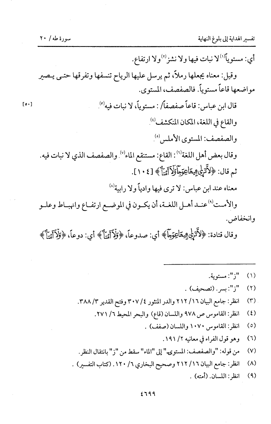 قال ابن عباس: قاعاً صفصفاً/: مستوياً، لا نبات فيه.