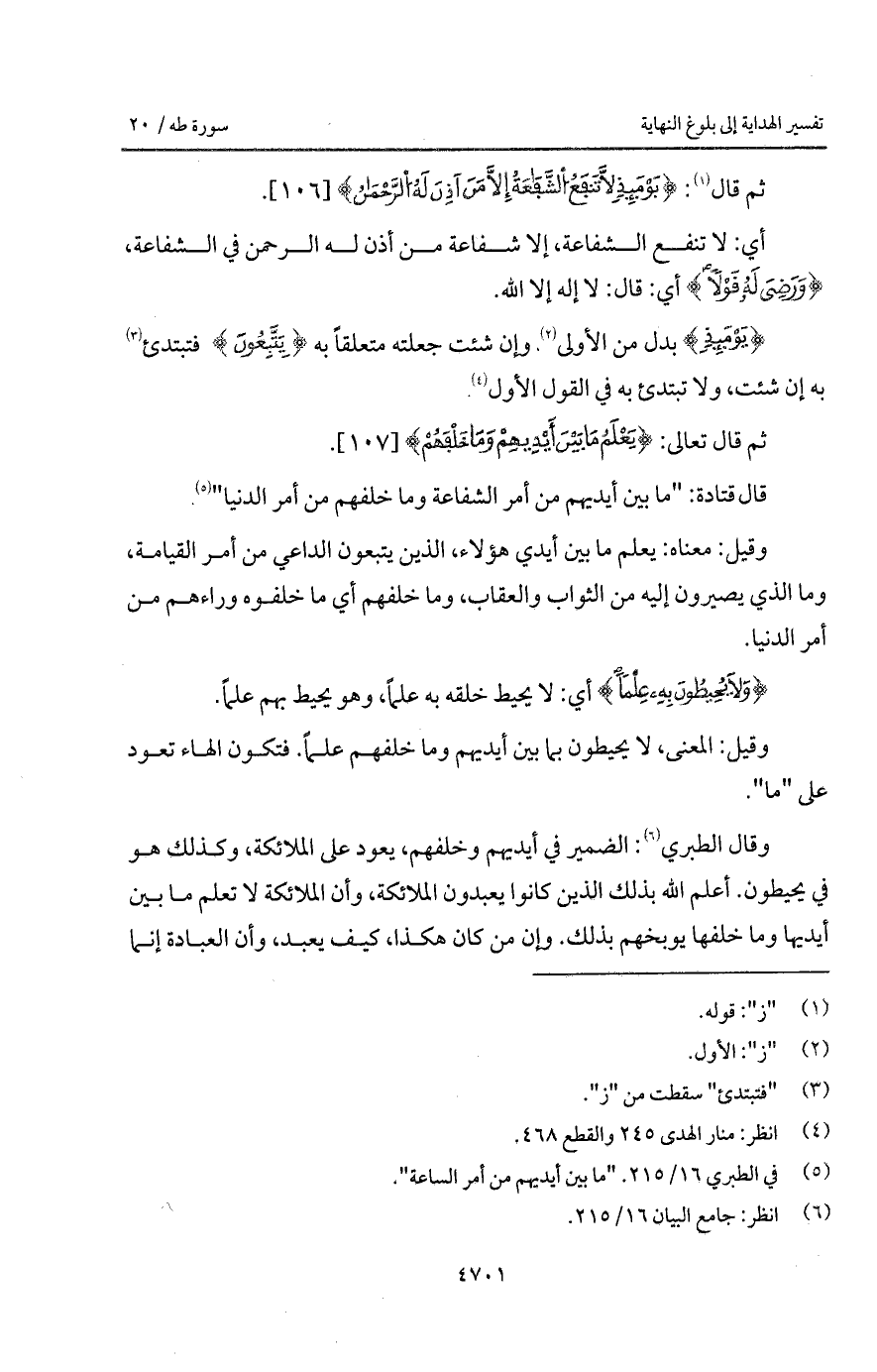 وقال الطبري: الضمير في أيديهم وخلفهم، يعود على الملائكة، وكذلك هو في يحيطون. أعلم الله بذلك الذين كانوا يعبدون الملائكة، وأن الملائكة لا تعلم ما بين أيديها وما خلفها يوبخهم بذلك. وإن من كان هكذا، كيف يعبد، وأن العبادة إنما