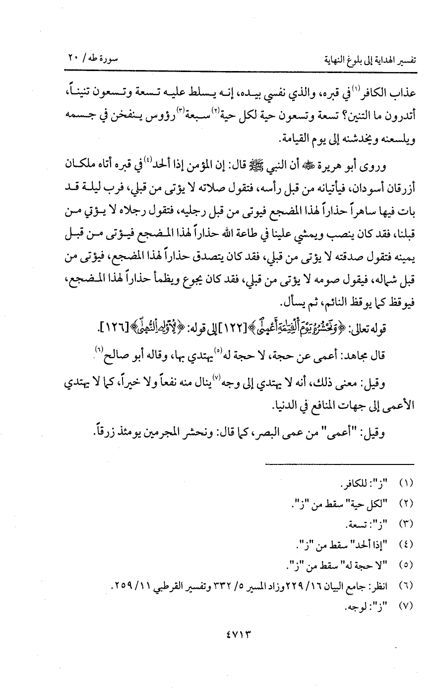 عذاب الكافر في قبره، والذي نفسي بيده، إنه يسلط عليه تسعة وتسعون تنيناً، أتدرون ما التنين؟ تسعة وتسعون عحية لكل حية سبعة رؤوس ينفخن في جسمه ويلسعنه ويخدشنه إلى يوم القيامة ".