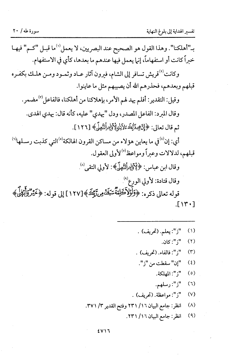 ب " أهلكنا ". وهذا القول هو الصحيح عند البصريين، لا يعمل ما قبل " كم " فيها خبراً كانت أو استفهاماً، إنما يعمل فيها عندهم ما بعدها، كأي في الاستفهام.