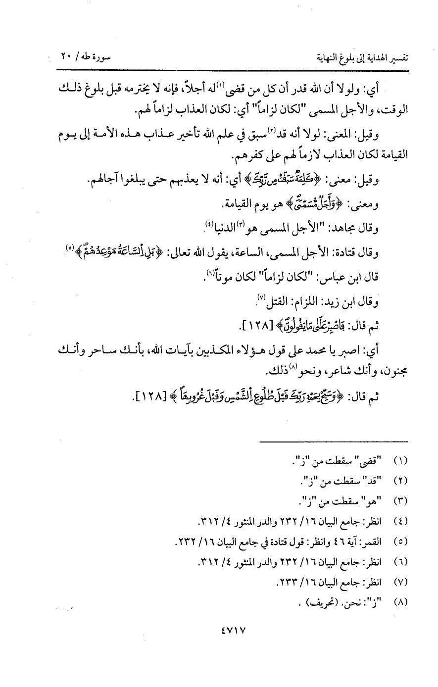 أي: ولولا أن الله قدر أن كل من قضى له أجلاً، فإنه لا يحترمه قبل بلوغ ذلك الوقت، والأجل المسمى " لكان لزاماً " أي: لكان العذاب لزاماً لهم.