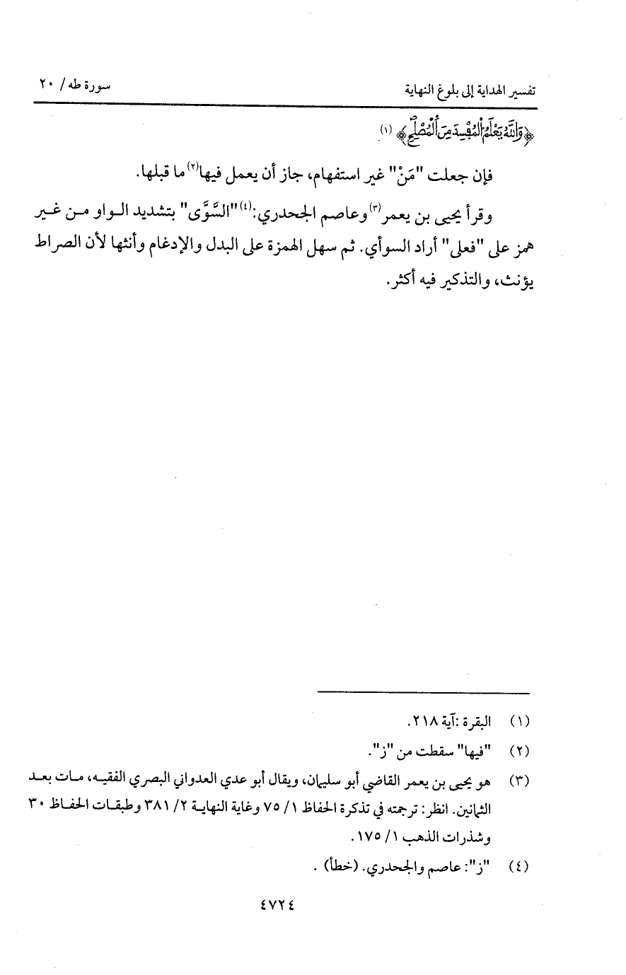 وقرأ يحيى بن يعمر وعاصم الجحدري: " السَّوَّى " بتشديد الواو من غير همز على " فعلى " أراد السوأي. ثم سهل الهمزة على البدل والإدغام وأنثها لأن الصراط يؤنث، والتذكير فيه أكثر.