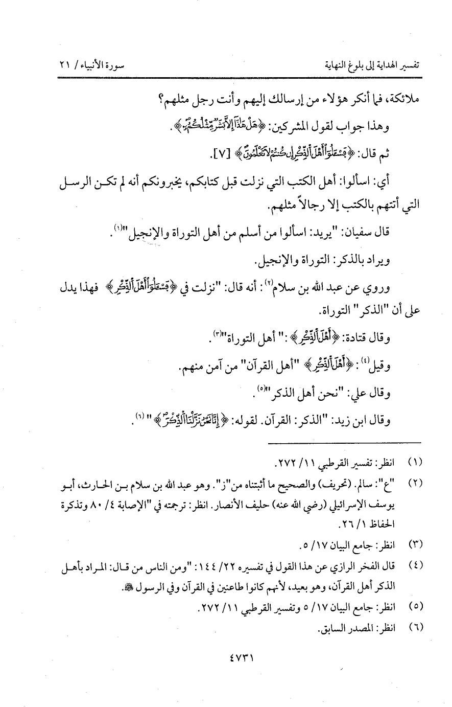 وقال قتادة: {أَهْلَ الذكر}: " أهل التوراة ".