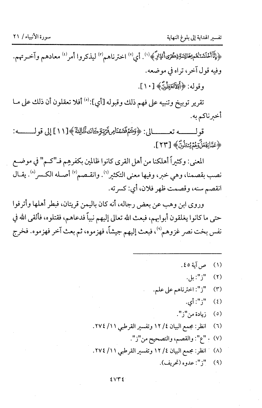 قوله تعالى: {وَكَمْ قَصَمْنَا مِن قَرْيَةٍ كَانَتْ ظَالِمَةً} إلى قوله: {عَمَّا يَفْعَلُ وَهُمْ يُسْأَلُونَ}.