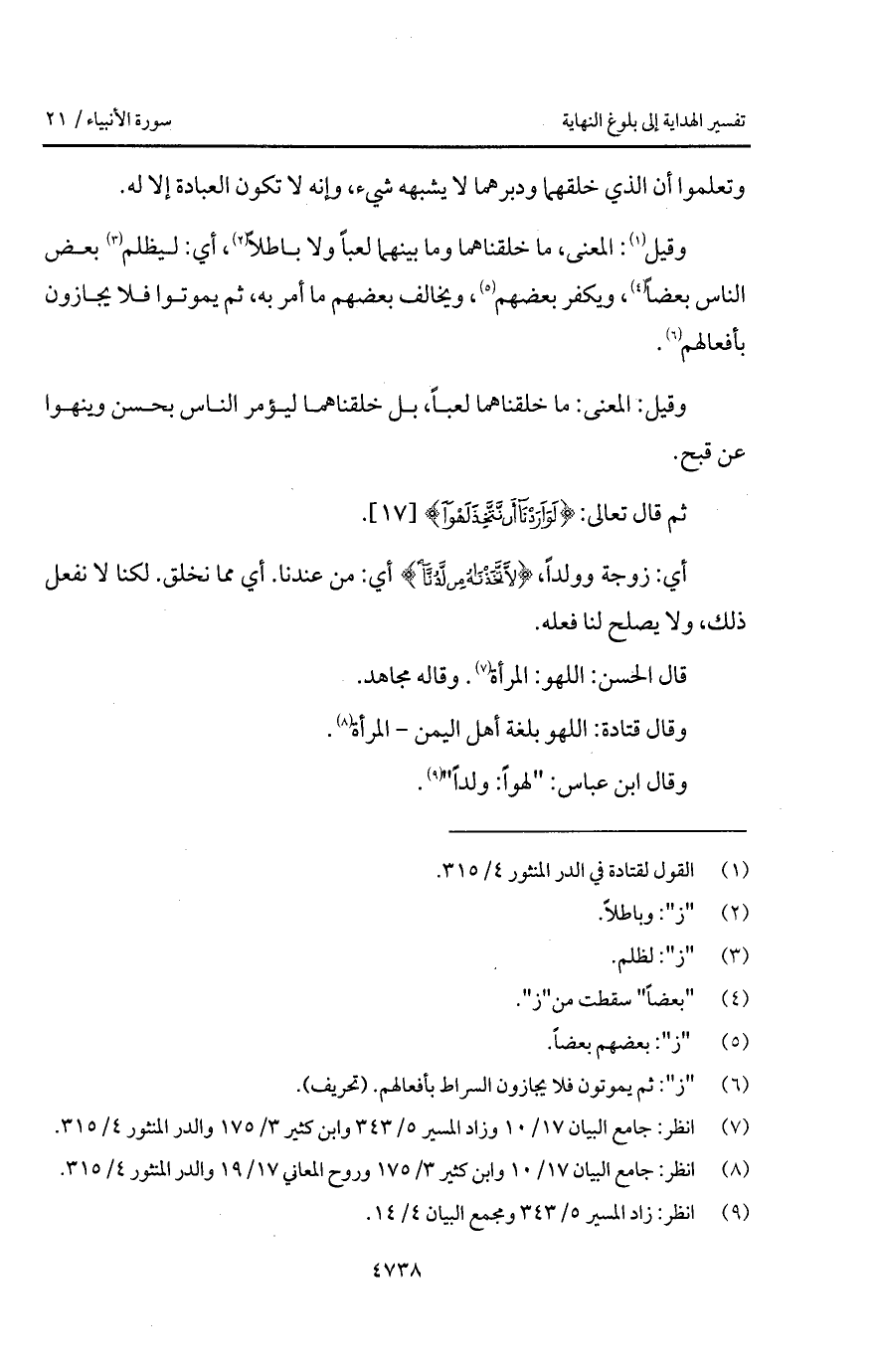 وقيل: المعنى: ما خلقناهما لعباً، بل خلقناهما ليؤمر الناس بحسن وينهوا عن قبح.