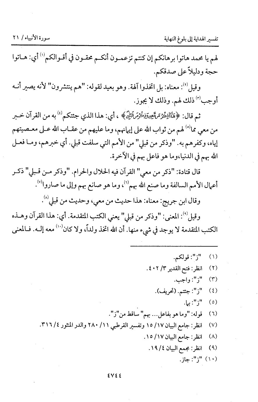 وقيلأ: المعنى: " وذكر من قبلي " يعني الكتب المتقدمة. أي: هذا القرآن وهذه الكتب المتقدمة لا يوجد في شيء منها. أن الله اتخذ ولداً، ولا كان معه إله. فالمعنى