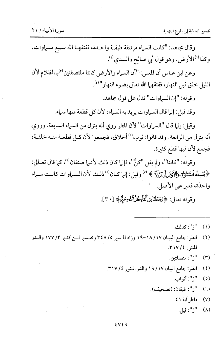 وقوله: " إن السماوات " تدل على قول مجاهد.