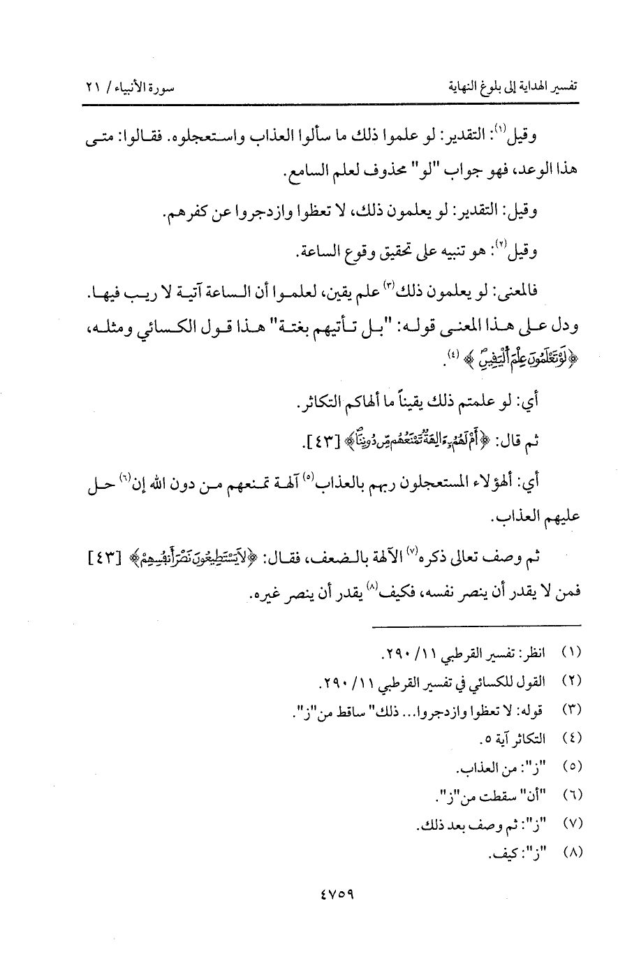فالمعنى: لو يعلمون ذلك علم يقين، لعلموا أن الساعة آتية لا ريب فيه. ودل على هذا المعنى قوله: " بل تأتيهم بغتة " هذا قول الكسائي ومثله، {لَوْ تَعْلَمُونَ عِلْمَ اليقين} [التكاثر: 5].