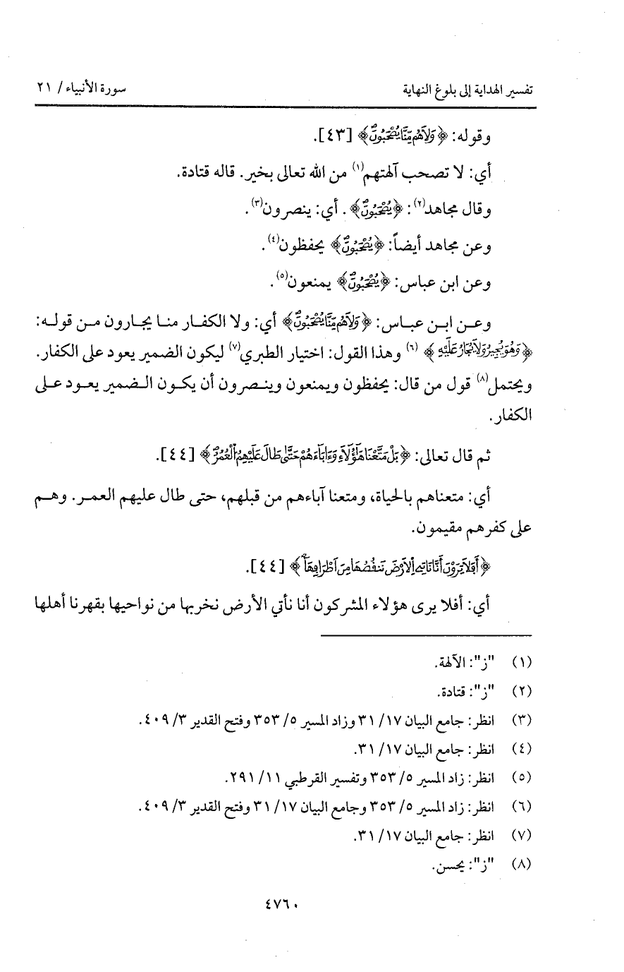 وقوله: {وَلاَ هُمْ مِّنَّا يُصْحَبُونَ}.