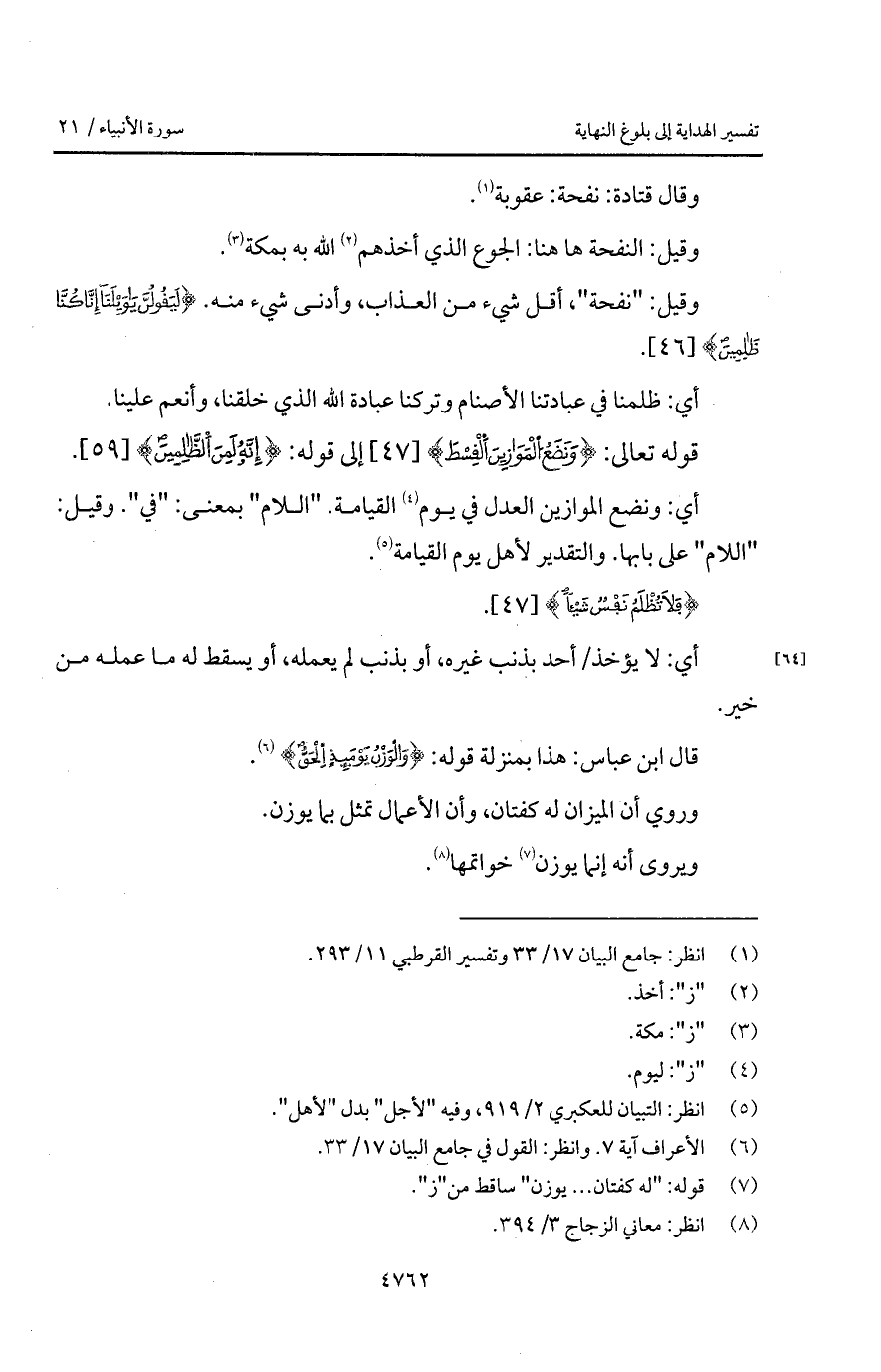 قوله تعالى: {وَنَضَعُ الموازين القسط} إلى قوله: {إِنَّهُ لَمِنَ الظالمين}.