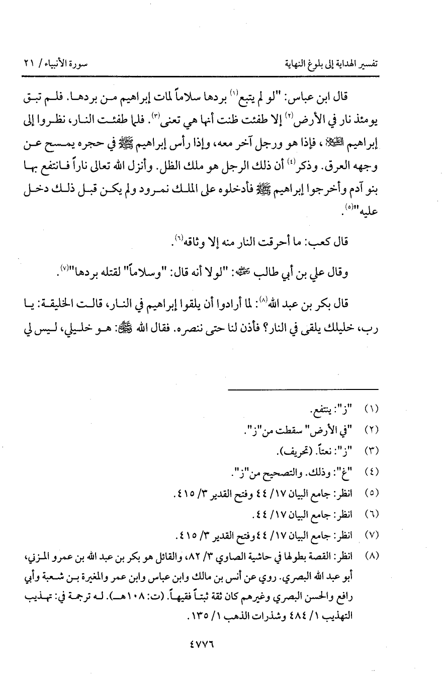 قال ابن عباس: " لو لم يتبع بردها سلاماً لمات إبراهيم من بردها. فلم تبق يومئذ نار في الأرض. إلا طفئت ظنت أنها هي تعنى. فلما طفئت النار، نظروا إلى إبراهيم عليه السلام، فإذا هو ورجل آخر معه، وإذا رأس إبراهيم A في حجره يمسح عن وجهه العرق. وذكر أن لك الرجل هو ملك الظل. وأنزل الله تعالى ناراً فانتفع بها بنو آدم وآخرجوا إبراهيم A فأدخلوه على الملك نمرود ولم يكن قبل لك دخل عليه ".