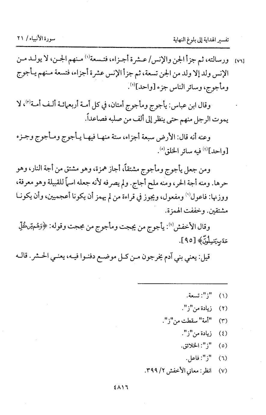 وعنه أنه قال: الأرض سبعة أجزاء، ستة منها فيها يأجوج ومأجوج وجزء [واحد] فيه سائر الخلق.