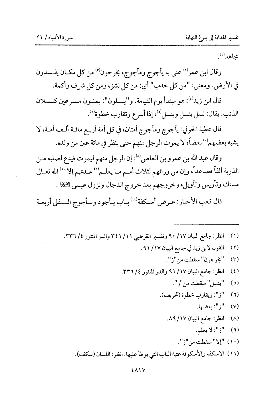 وقال عبد الله بن عمرو بن العاص: إن الرجل منهم ليموت فيدع لصلبه من الذرية ألفاً فصاعداً، وإن من ورائهم لثلاث أمم ما يعلم عدتهم إلا الله تعالى مسنك وتأريس وتأويل، وخروجهم بعد خروج الدجال ونزول عيسى عليه السلام.
