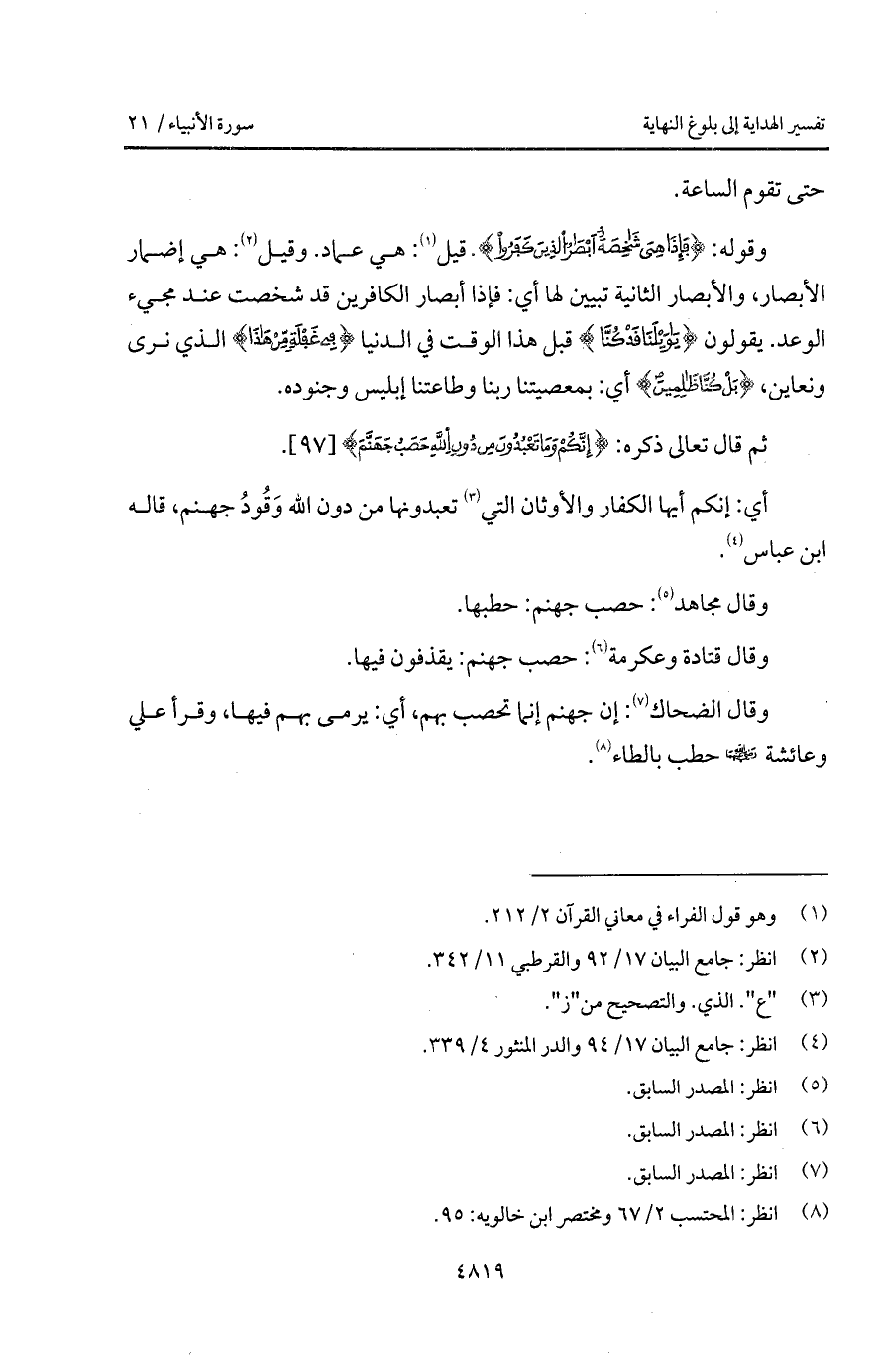 وقال مجاهد: حصب جهنم: حطبها.