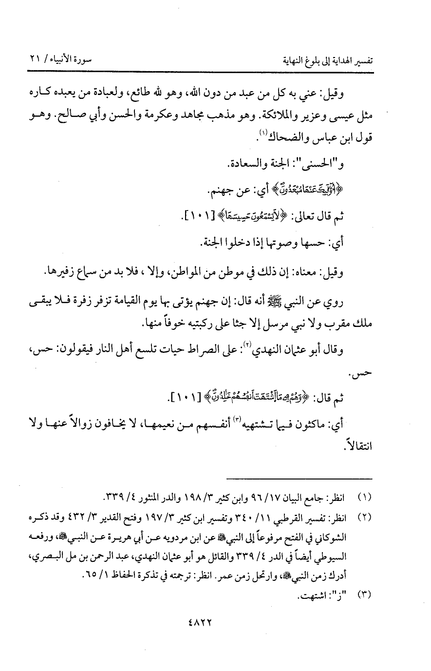 وقال أبو عثمان النهدي: على الصراط حيات تلسع أهل النار فيقولون: حس، حس.