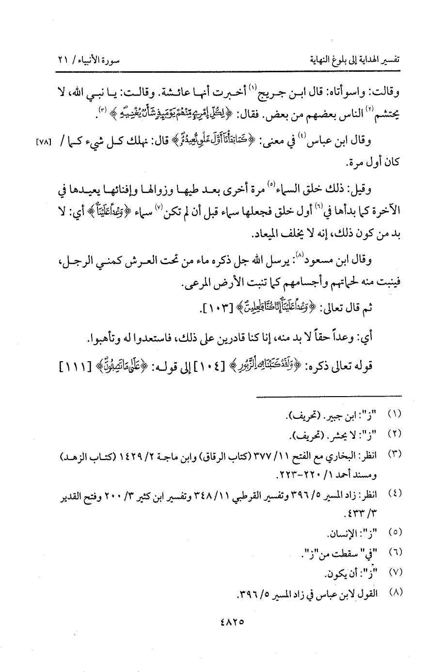 وقال ابن عباس في معنى: {كَمَا بَدَأْنَآ أَوَّلَ خَلْقٍ نُّعِيدُهُ} قال: نهلك كل شيء كما/ كان أول مرة.