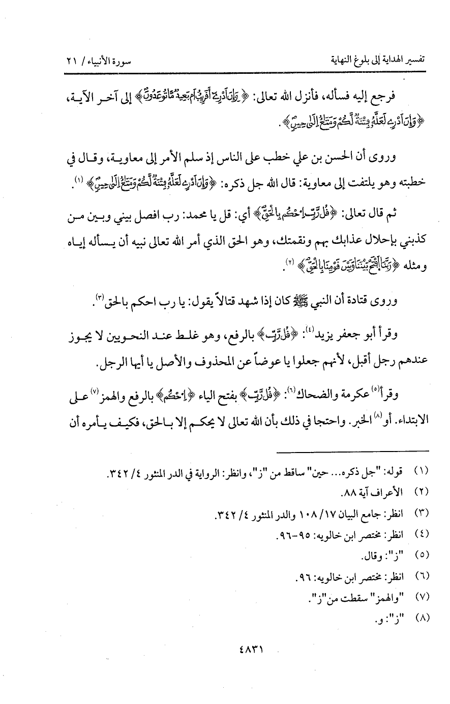 وقرأ عكرمة والضحاك: {قَالَ رَبِّ} بفتح الياء {احكم} بالرفع والهمز على الابتداء. أو الخبر. واحتجا في ذلك بأن الله تعالى لا يحكم إلا بالحق، فكيف يأمره أن