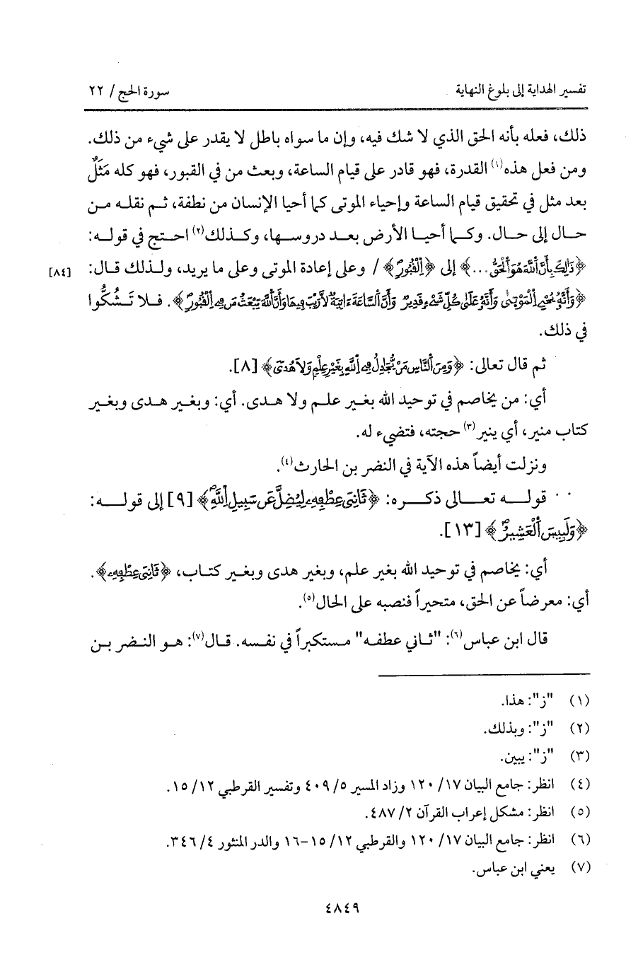 قوله تعالى ذكره: {ثَانِيَ عِطْفِهِ لِيُضِلَّ عَن سَبِيلِ الله} إلى قوله {وَلَبِئْسَ العشير}.
