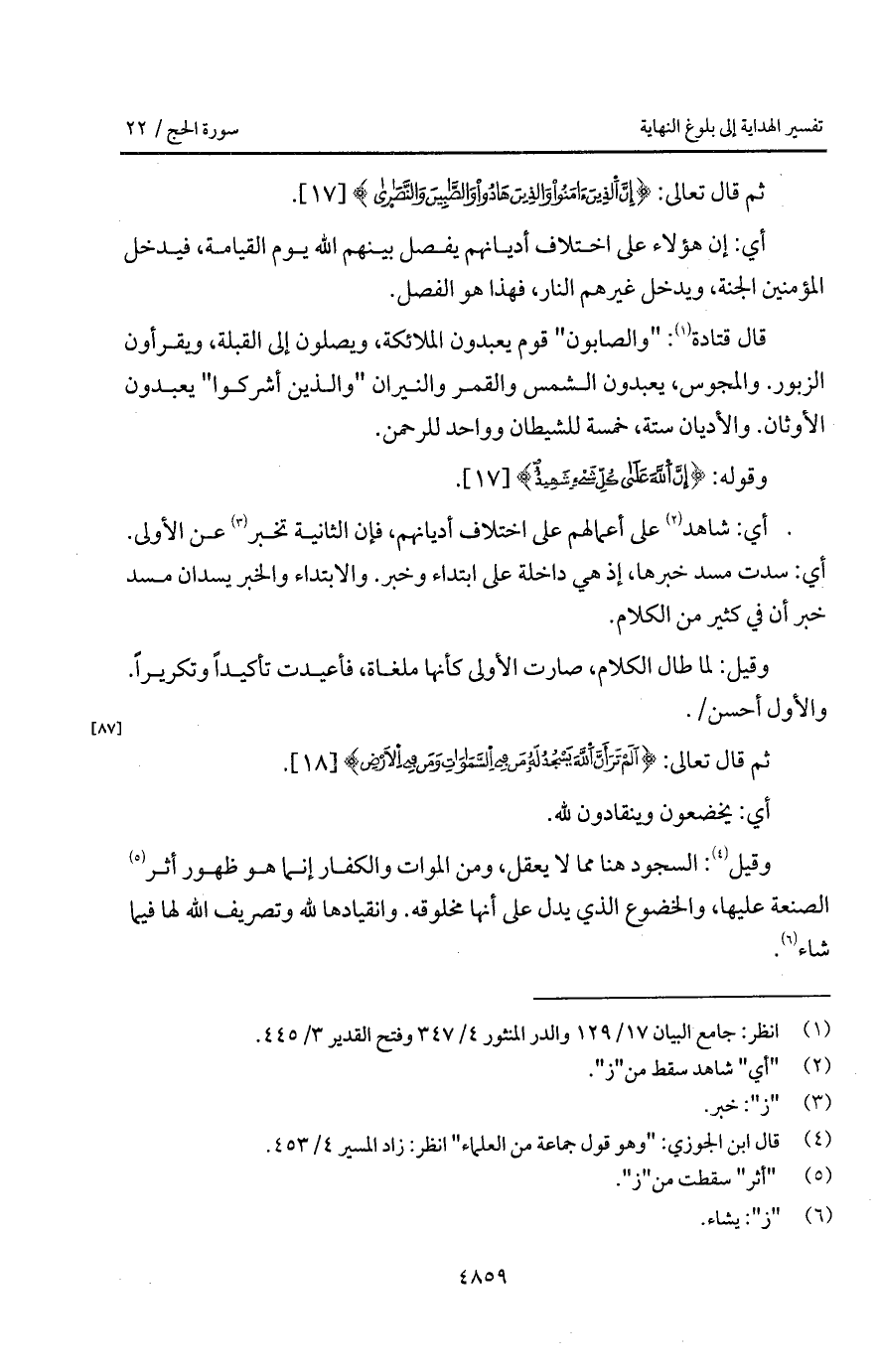 قال قتادة: " والصابون " قوم يعبدون الملائكة، ويصلون إلى القبلة، ويقرأون الزبور. والمجوس، يعبدون الشمس والقمر والنيران " والذين أشركوا يعبدون الأوثان. والأديان ستة، خمسة للشيطان وواحد للرحمن.
