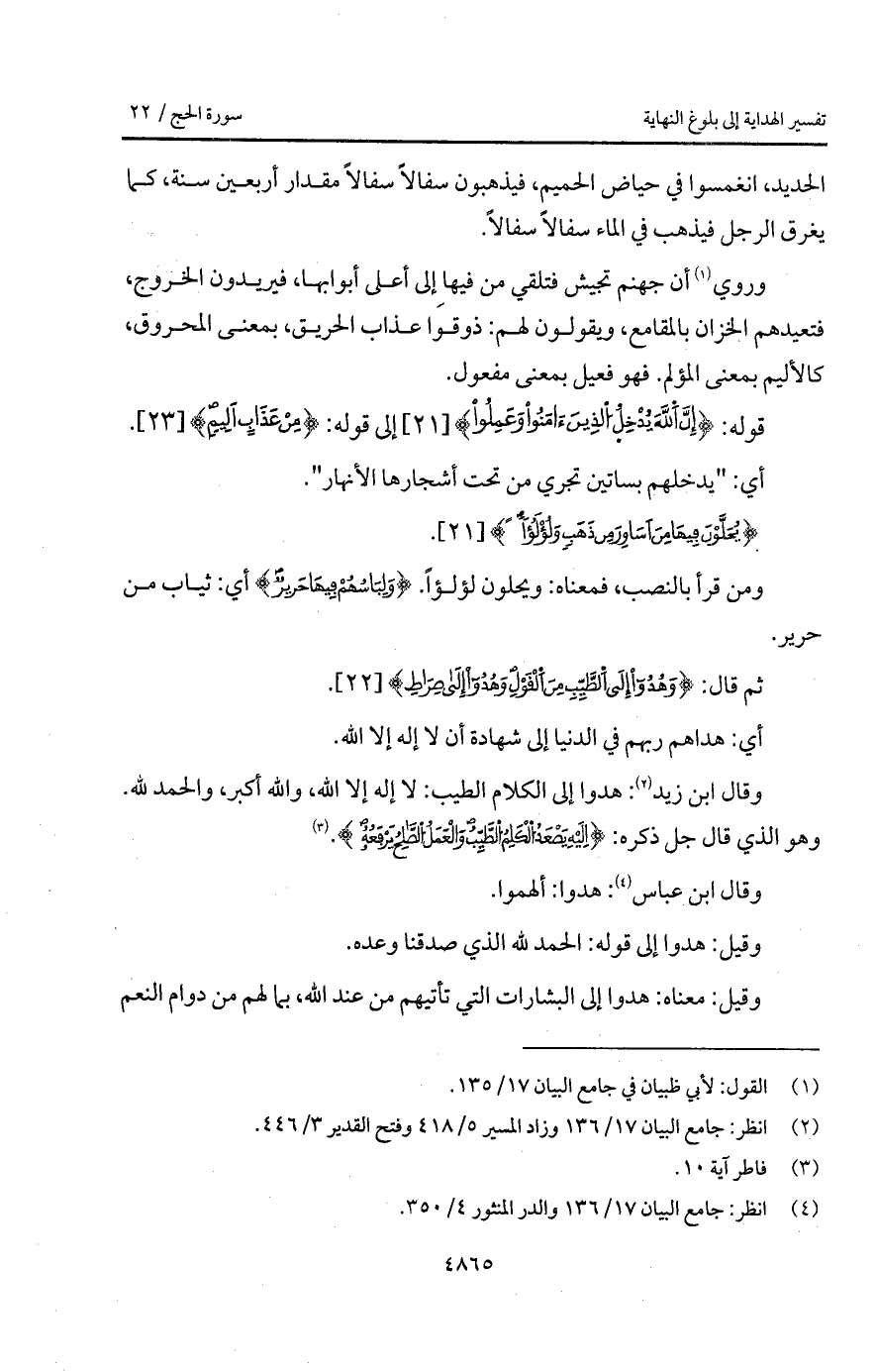 قوله: {إِنَّ الله يُدْخِلُ الذين آمَنُواْ وَعَمِلُواْ الصالحات} إلى قوله: {مِنْ عَذَابٍ أَلِيمٍ}.