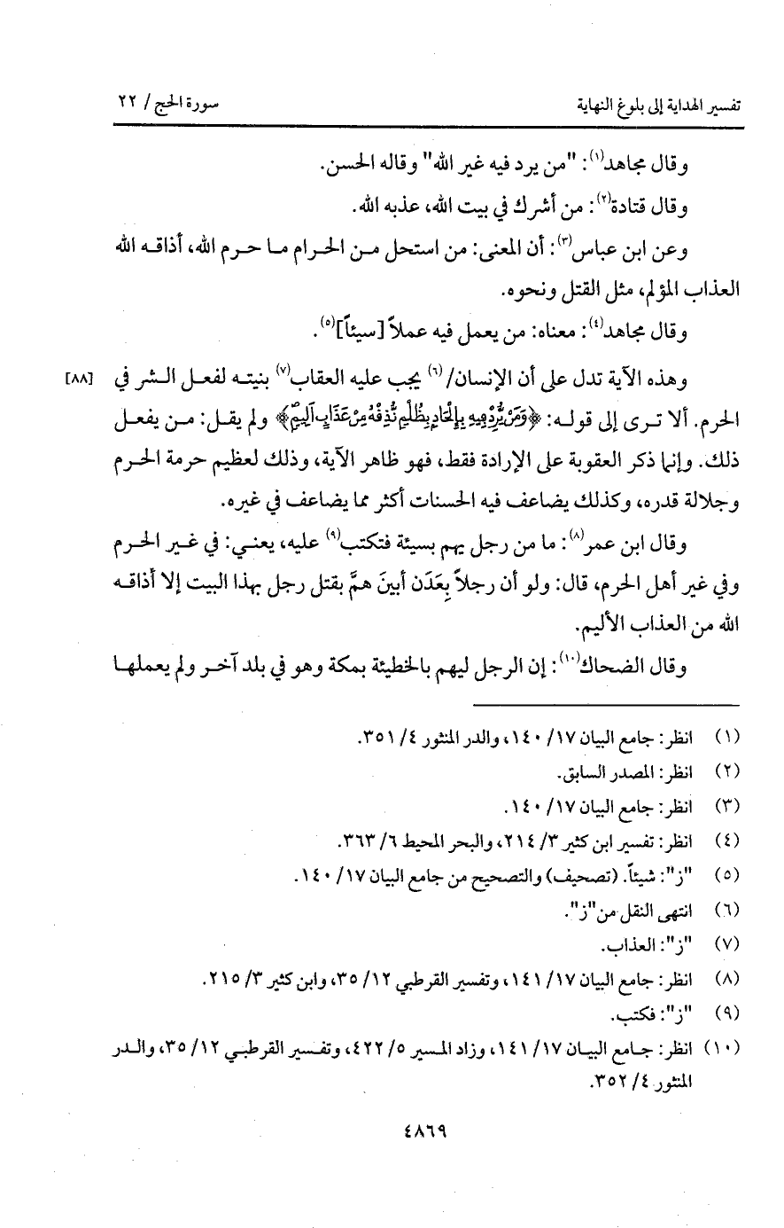 ألا ترى إلى قوله: {وَمَن يُرِدْ فِيهِ بِإِلْحَادٍ بِظُلْمٍ نُّذِقْهُ مِنْ عَذَابٍ أَلِيمٍ} ولم يقل: من يفعل ذلك. وإنما ذكر العقوبة على الإرادة فقط، فهو ظاهر الآية، وذلك لعظيم حرمة الحرم وجلالة قدره، وكذلك يضاعف فيه الحسنات أكثر مما يضاعف في غيره.