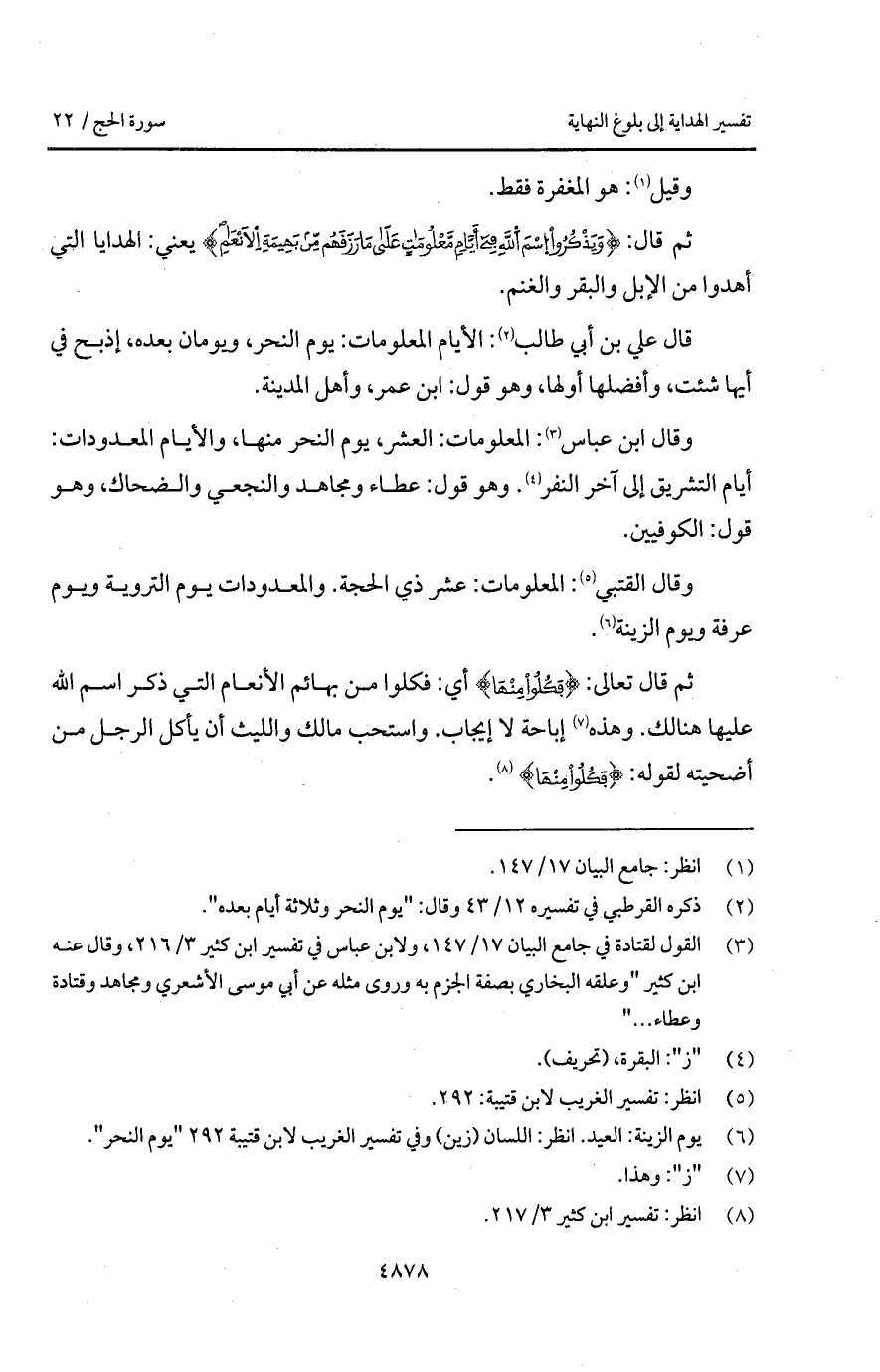 وقال القتبي: المعلومات: عشر ذي الحجة. والمعدودات يوم التروية ويوم عرفة ويوم الزنية.