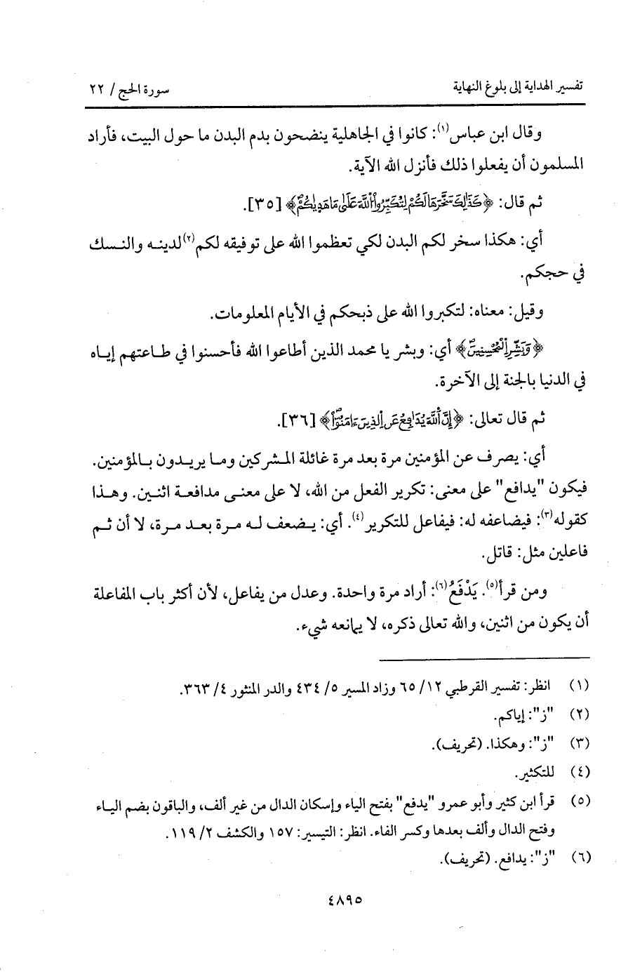 ومن قرأ. يَدْفَعُ: أراد مرة واحدة. وعدل من يفاعل، لأن أكثر باب المفاعلة أن يكون من اثنين، والله تعالى ذكره، لا يمانعه شيء.