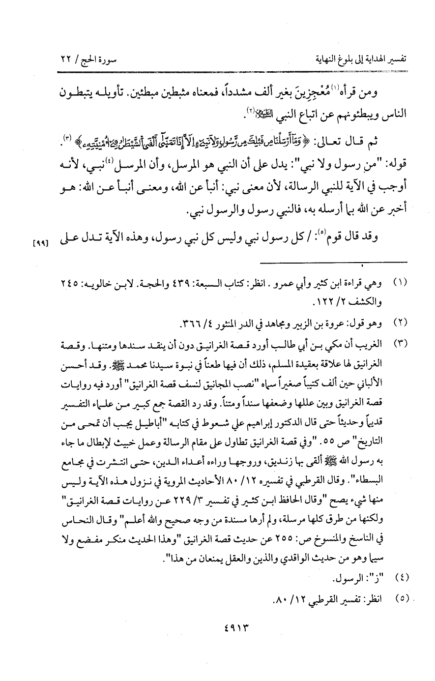 ثم قال تعالى: {وَمَآ أَرْسَلْنَا مِن قَبْلِكَ مِن رَّسُولٍ وَلاَ نَبِيٍّ إِلاَّ إِذَا تمنى أَلْقَى الشيطان في أُمْنِيَّتِهِ}. قوله: " من رسول ولا نبي ": يدل على أن النبي هو المرسل، وأن المرسل نبي، لأنه أوجب في الآية للنبي الرسالة، لأن معنى نبي: أنبأ عن الله، ومعنى أنبأ عن الله: هو أخبر عن الله بما أرسله به، فالنبي رسول والرسول نبي.