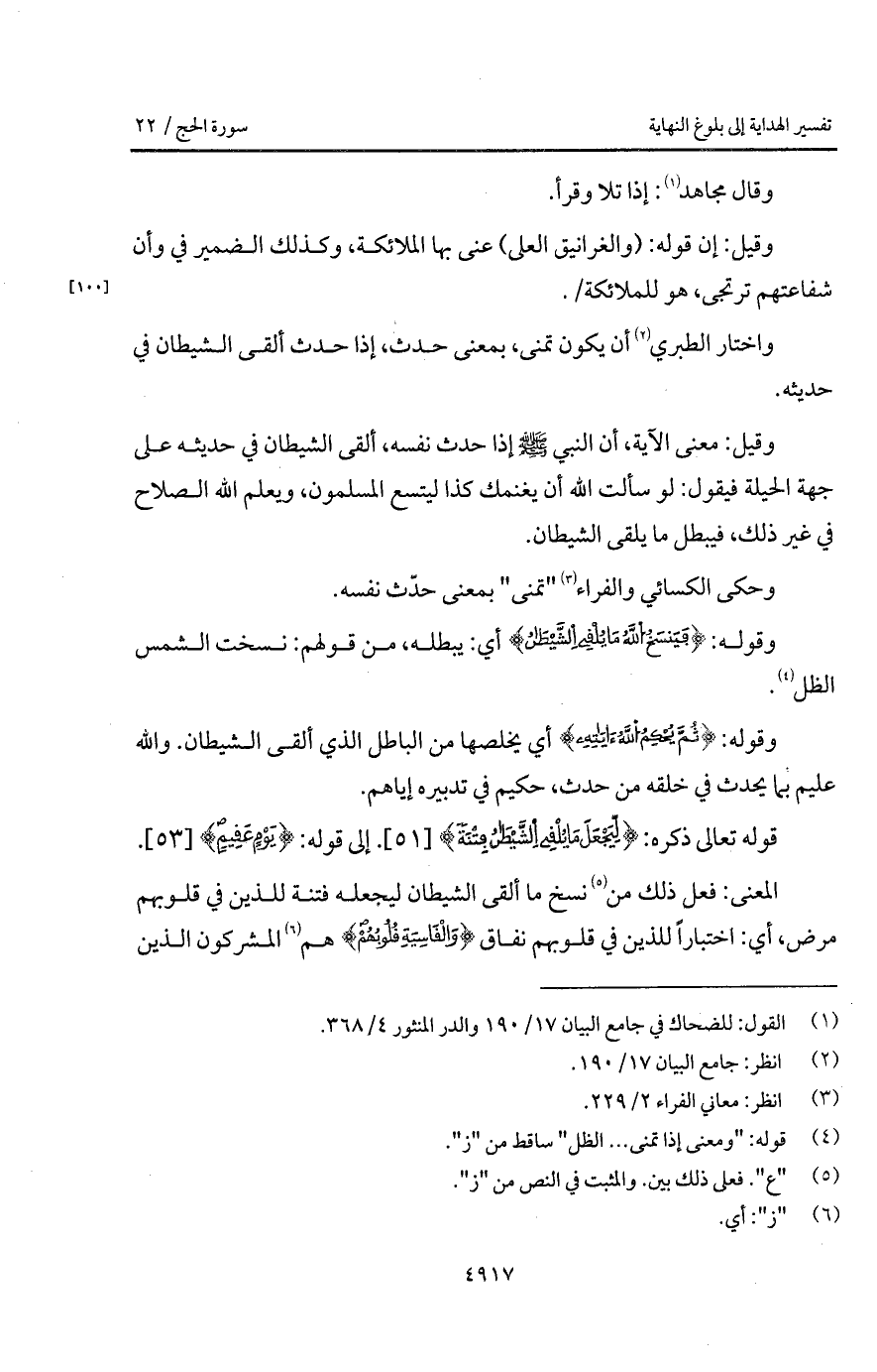 وقيل: معنى الآية، أن النبي A إذا حدث نفسه، ألقى الشيطان في حديثه على جهة الحيلة فيقول: لو سألت الله أن يغنمك كذا ليتسع المسلمون، ويعلم الله الصلاح في غير ذلك، فيبطل ما يلقى الشيطان.