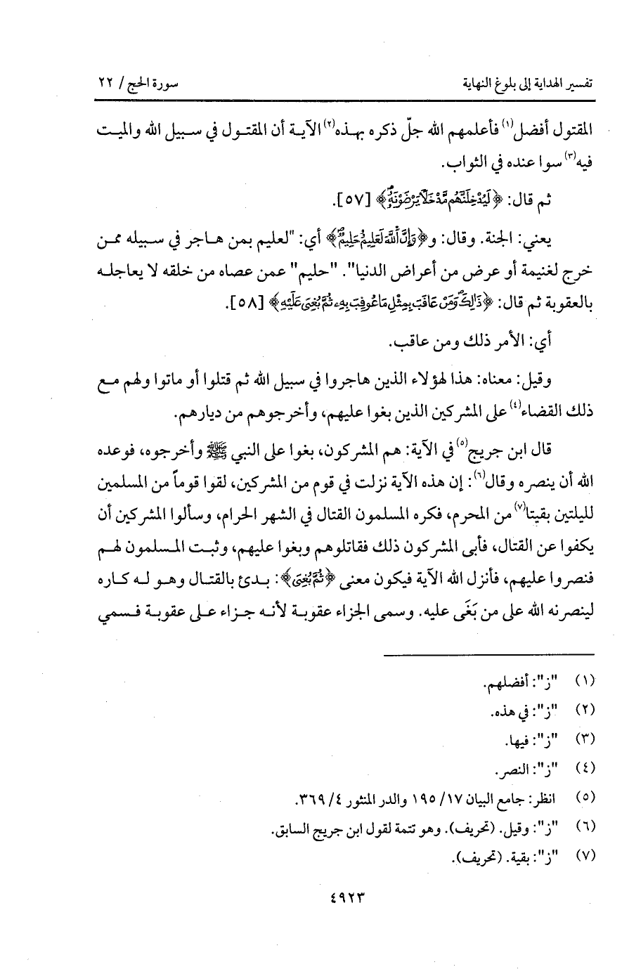يعني: الجنة. وقال: {وَإِنَّ الله لَعَلِيمٌ حَلِيمٌ} أي: " لعليم بمن هاجر في سبيله ممن خرج لغنمية أو عرض من أعراض الدنيا ". " حليم " عمن عصاه من خلقه لا يعاجله بالعقوبة ثم قال: {ذلك وَمَنْ عَاقَبَ بِمِثْلِ مَا عُوقِبَ بِهِ ثُمَّ بُغِيَ عَلَيْهِ}.