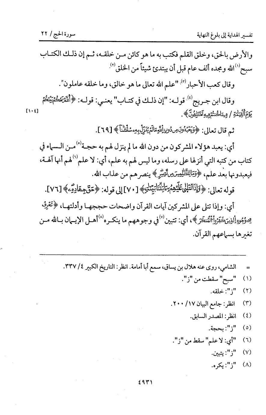 والأرض بالحق، وخلق القلم فكتب به ما هو كائن من خلقه، ثم إن ذلك الكتاب سبح الله ومجده ألف عام قبل أن يبتدئ شيئاً من الخلق.
