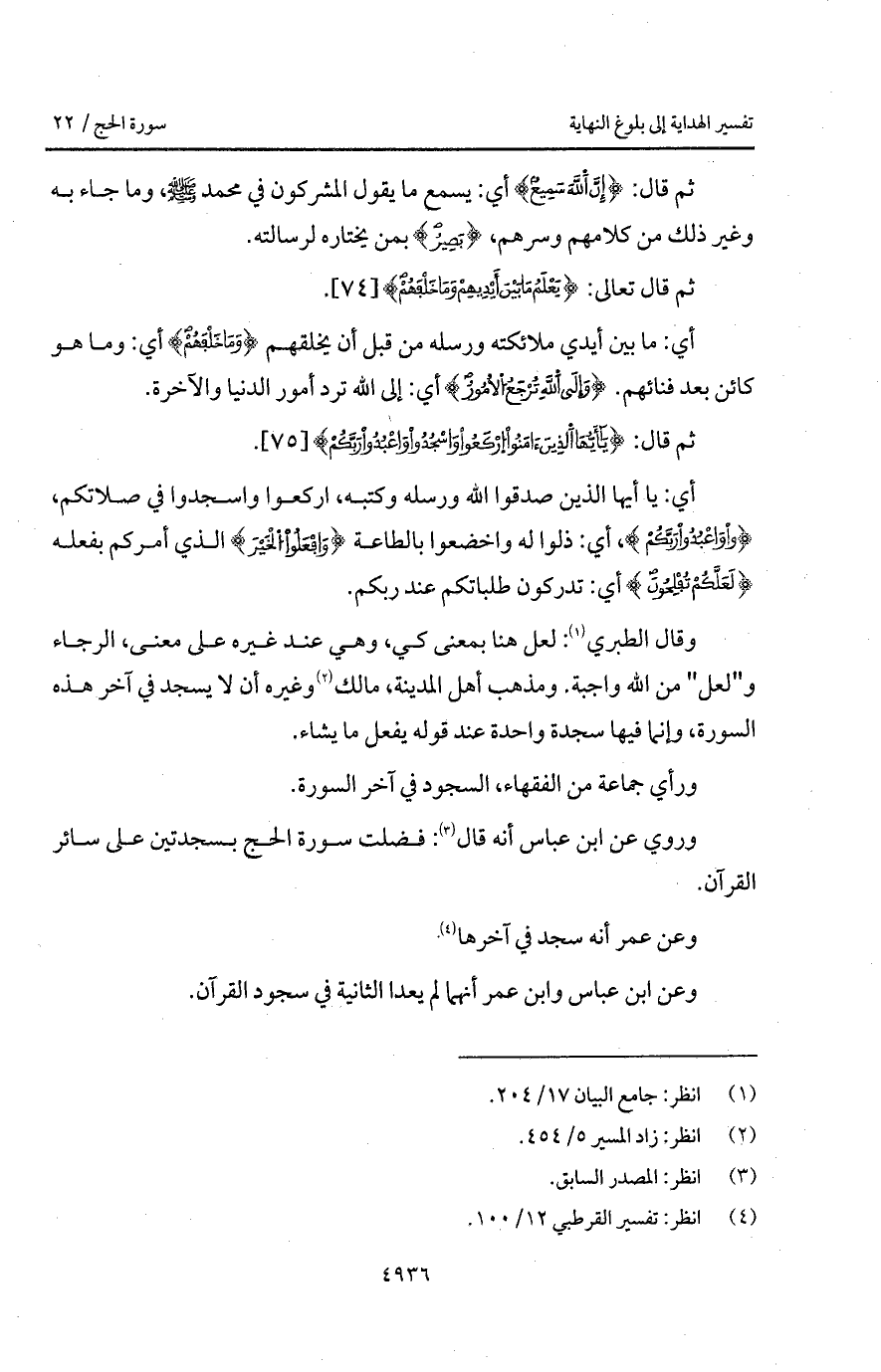 وقال الطبري: لعل هنا بمعنى كي، وهي عند غيره على معنى، الرجاء و " لعل " من الله واجبة. ومذهب أهل المدينة، مالك وغيره أن لا يسجد في آخر هذه السورة، وإنما فيها سجدة واحدة عند قوله يفعل ما يشاء.