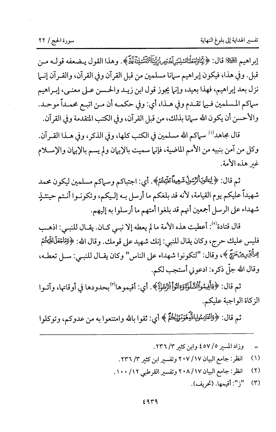 قال مجاهد سماكم الله مسلمين في الكتب كلها، وفي الذكر، وفي هذا القرآن. وكل من آمن بنبيه من الأمم الماضية، فإنما سميت بالإيمان ولم يسم بالإيمان والإسلام غير هذه الأمة.